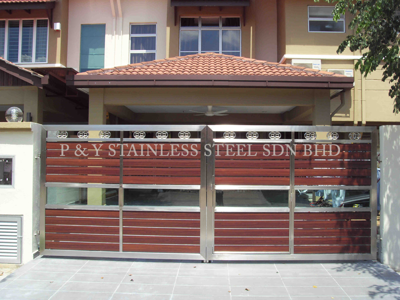 Stainless Steel Swing Gate with Aluminium Wood